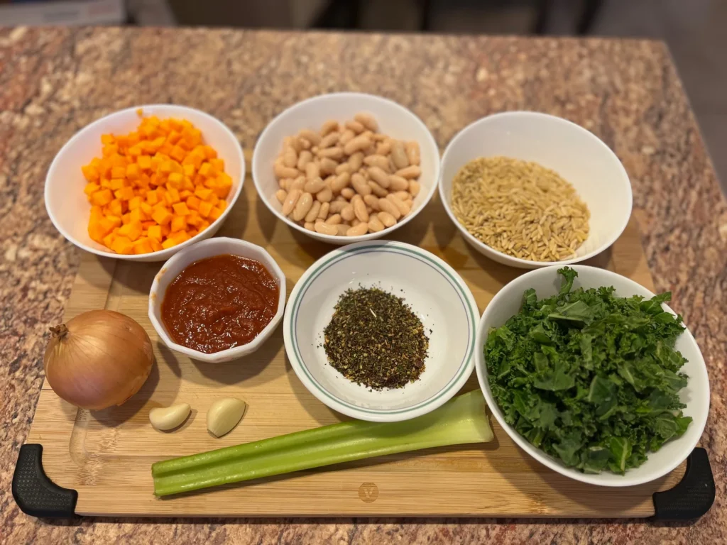 The surprise ingredient. Kale adds texture, earthiness, and a slightly bitter note that balances the sweetness of the squash and tomatoes.