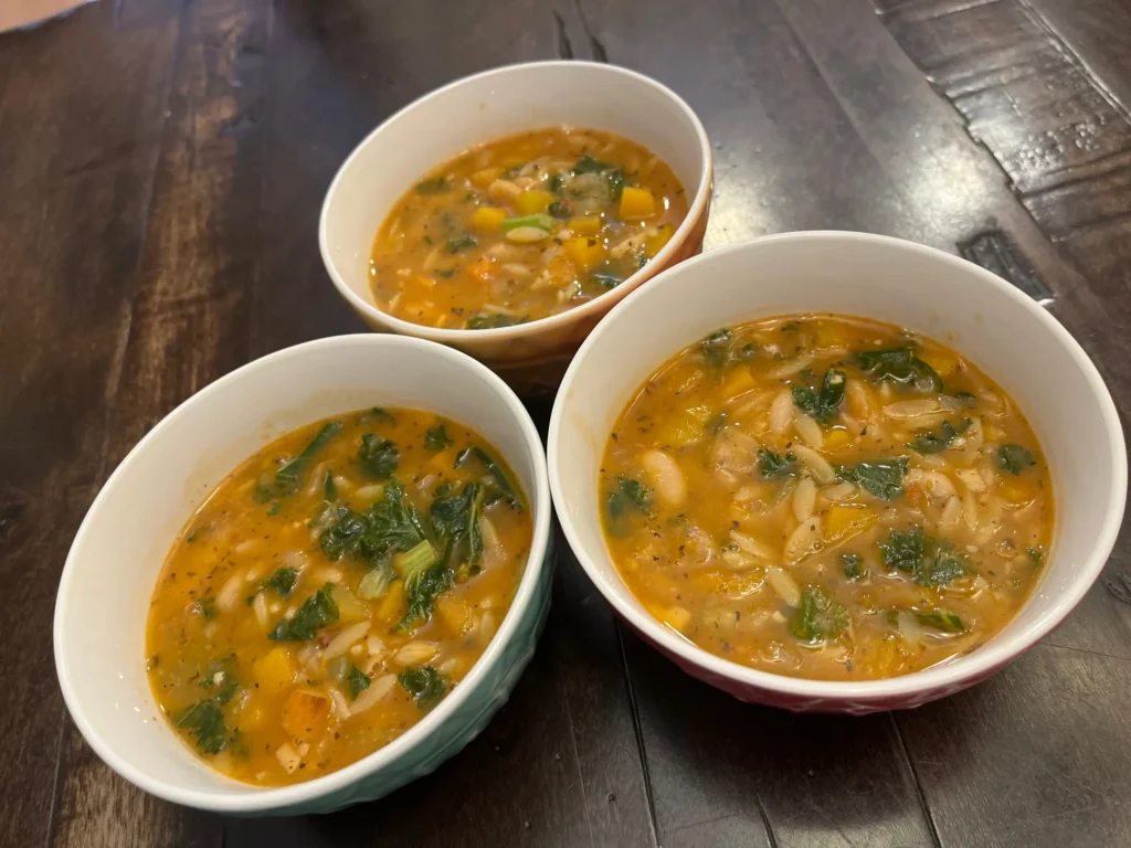 When I got home, I recreated my own vegetarian minestrone, inspired by that Roman trattoria bowl. It’s rich, comforting, and packed with vegetables, with kale playing a starring role just like in that unforgettable soup.