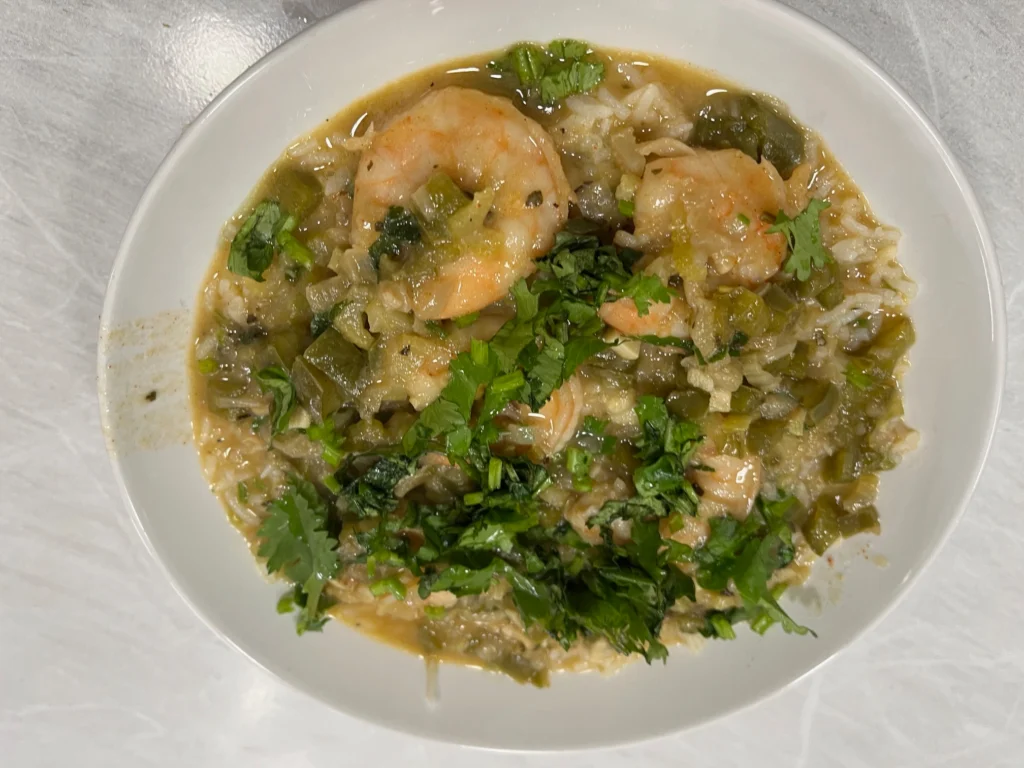 • Roux: Made from olive oil, butter, and flour, the roux thickens the sauce and gives shrimp etouffee its signature richness.